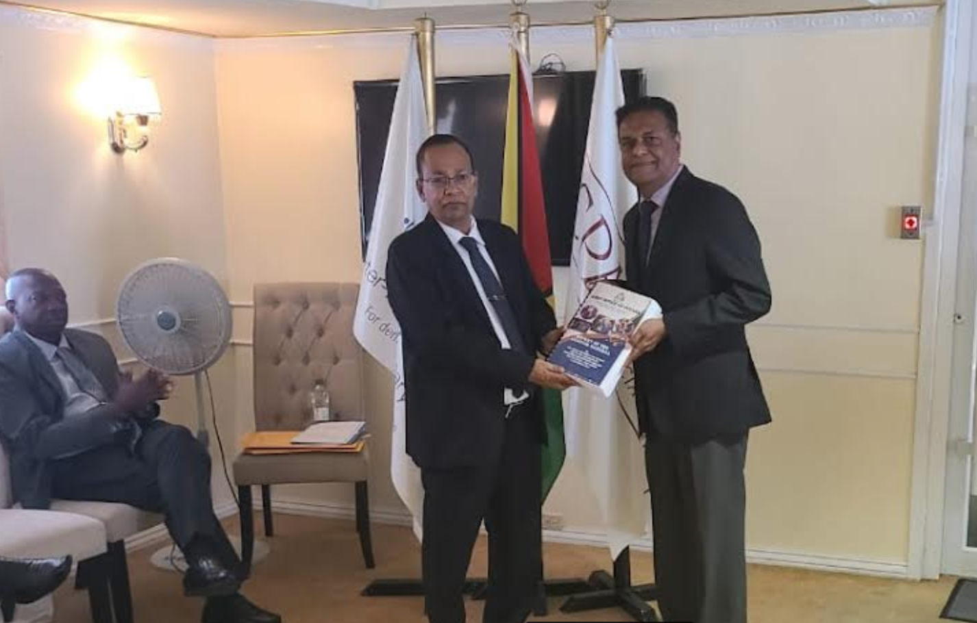 The Clerk of the National Assembly, Sherlock Isaacs; and Public Accounts Committee members, Minister Juan Edghill, Dharamkumar Seeraj; and Opposition MP Juretha Fernandes were among the officials present at the handing over ceremony.
