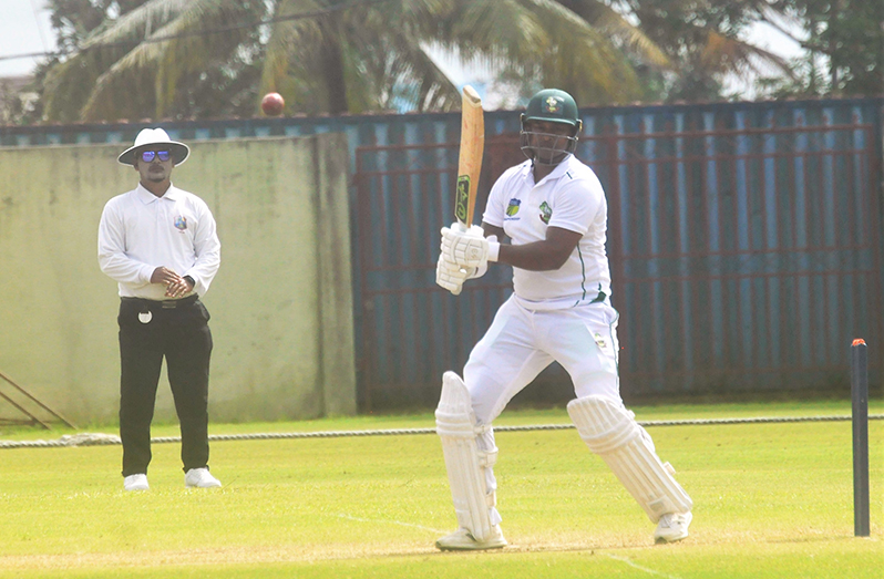 Persaud looked very uncomfortable against off-spinner Richie Looknauth and after pushing and prodding as the ball went past the bat, the left-hander tried to hit his way out of trouble and should have been taken at wide mid-off as he skied his fellow West Demerara team mate, but Sylus Tyndall misjudged the offering.